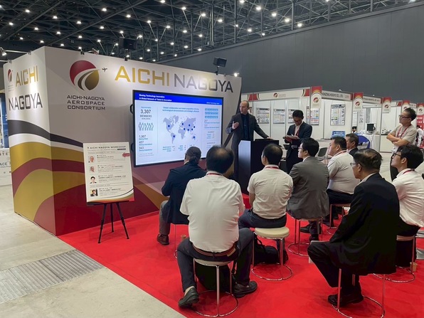 2025年9月24日(水)から9月26日(金)までポートメッセなごやで開催された、日本最大規模の国際的な航空宇宙産業に関する商談会「エアロマート名古屋2025」に、県内企業35社とともに「あいち・なごやパビリオン」として出展しました。