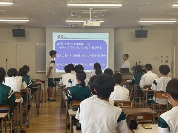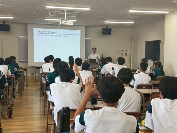 2025年9月19日(金)には、愛知県立春日井高校にて高校2年生36名を対象とした出前講座を開催しました。航空機の開発・製造経験者である一般社団法人中部航空宇宙産業センター(C-ASTEC)の平上雄一氏に講師を務めていただき、航空機が飛ぶメカニズムや歴史、航空機開発の経験等について講義いただきました。