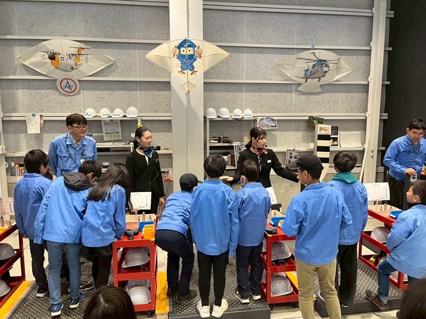 また、整備士体験プログラムでは、工具の扱い方や作業の流れを学び、航空機の安全を支える仕事の大切さを体感しました。イベントの最後にはクイズ大会が行われ、楽しみながら学んだ内容を振り返る時間となりました。